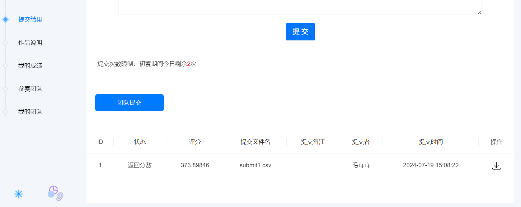 2)赛事提供下载数据,选手在本地进行算法调试,在比赛页面提交结果。