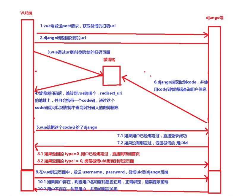 4. Vue获取到微博返回的code后,会将code发送给django后端(上面的redirect_url)