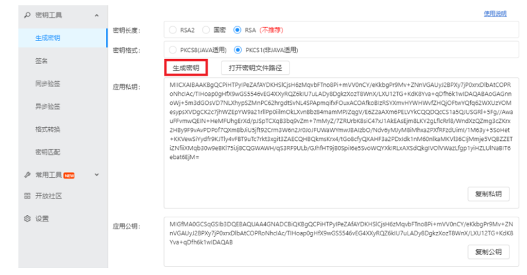 生成秘钥参考官网: https://docs.open.alipay.com/291/105971