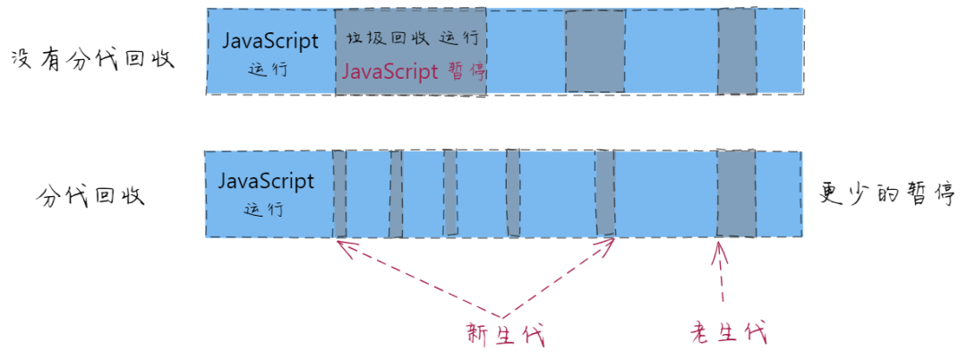 这就是我们接下来谈的关于垃圾回收的问题:什么时候进行垃圾回收,可以避免长时间暂停。