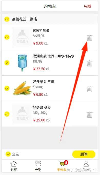 2、在购物车进入编辑状态,删除购物车项,需要触发一次