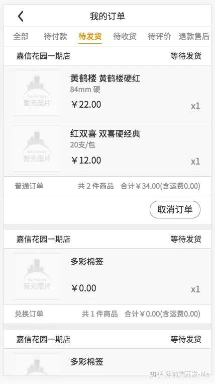 1、当前是订单列表页,订单列表也点击取消订单,然后更新对应的订单列表
