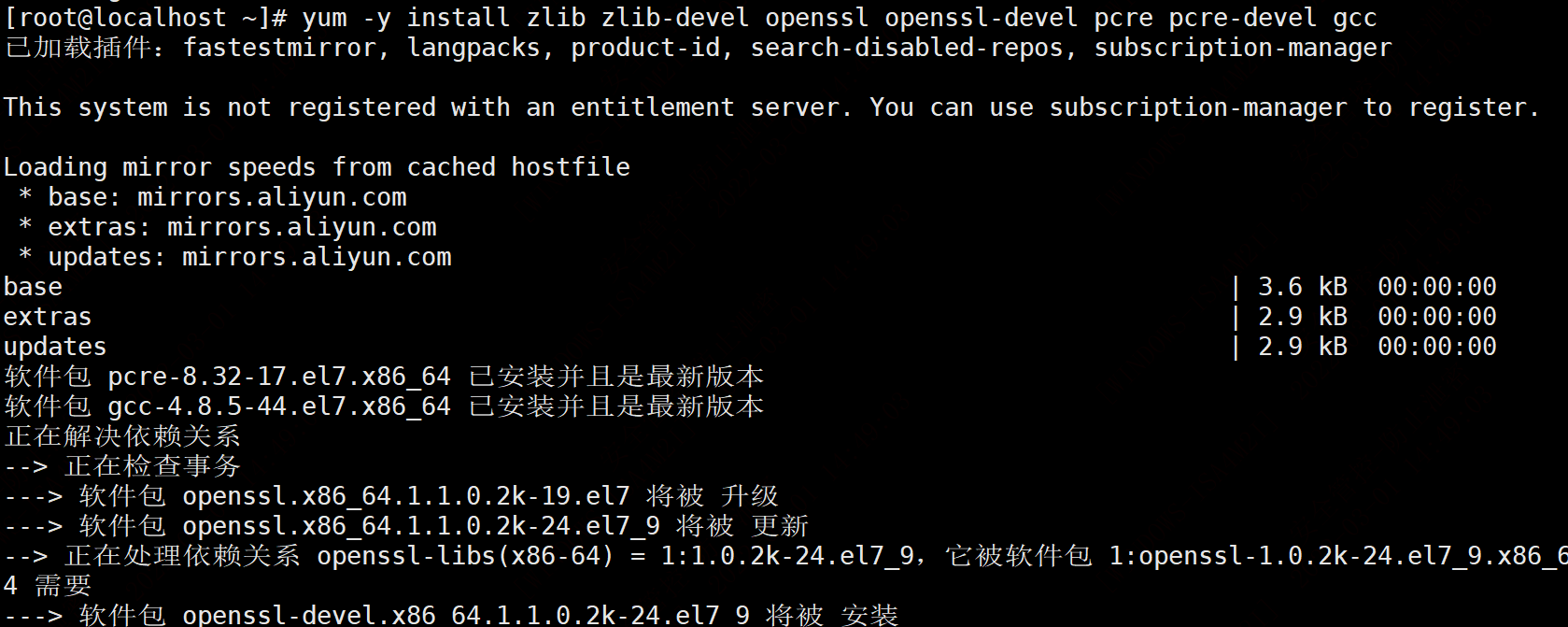 yum -y install zlib zlib-devel openssl openssl-devel pcre pcre-devel gcc