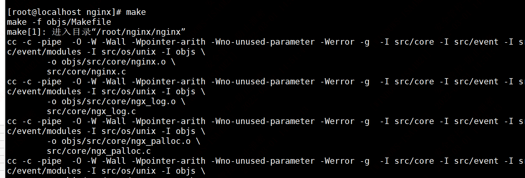 3.编译nginx:make或make install 【如输入make,报以下错误,原因:未安装相关依赖包】