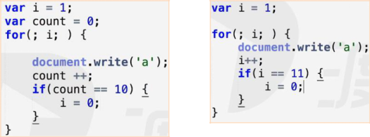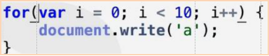 因为看的是执行顺序,写外面也可以,执行顺序是一样,打印十个 a,也可以写成: