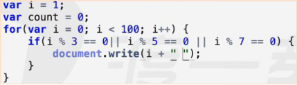 例打印 100 以内能被 3 整除,或者能被 5 整除,或者能被 7 整除的数: