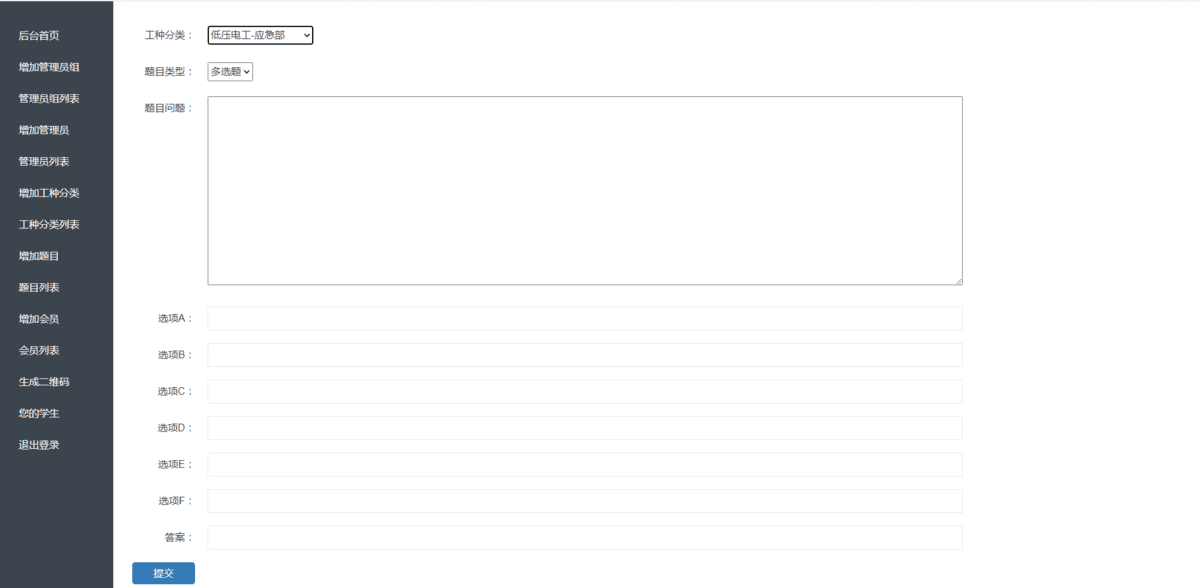 后台可以设置多个工种(科目类别),设置工种(科目类别)的时候可以设置模拟考试的题目比例,比如40题单选题,40题判断题,20题多选题。
