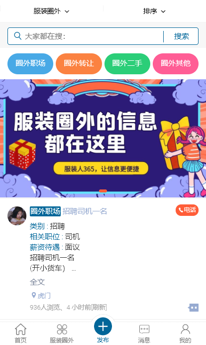 本地门户微信小程序(含求职招聘,二手交易,物品寻找,房屋出租,顺风车等)