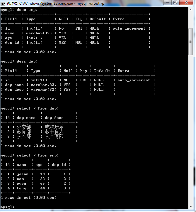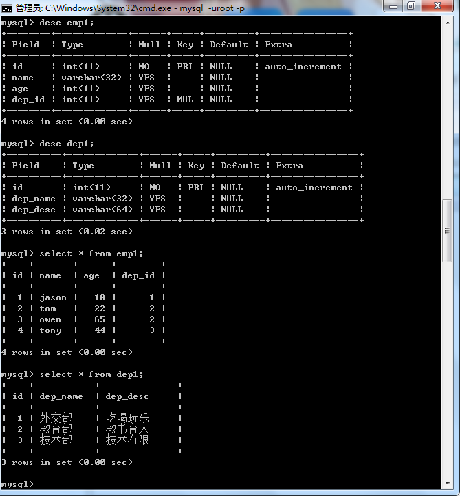 1.在创建表的时候,要先创建被关联表(没有外键字段的表)