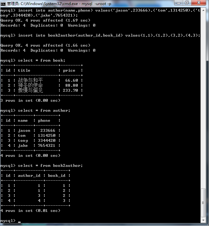 2.在插入数据时一定要先插入被关联表(没有外键字段的表)