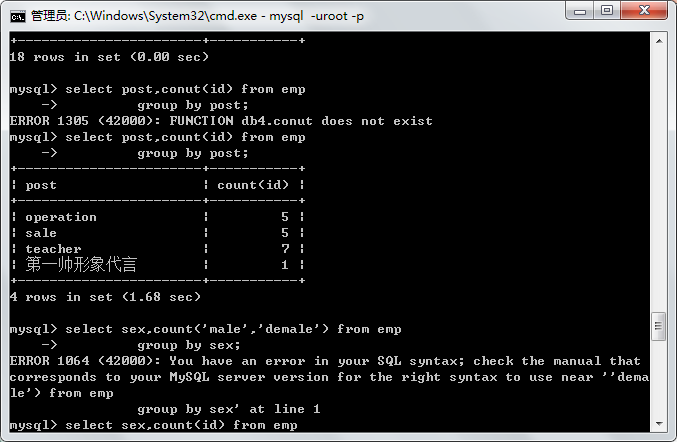 - 查询关键字之group by分组