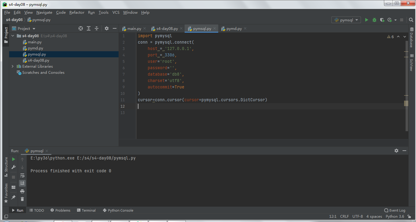 pymysql模块 import pymysql conn = pymysql.connect( host, port, user, password, database, charset ) curcor = conn.cursor() cursor.excute() cursor.fetchall() # MySQL默认的端口号是3306 -