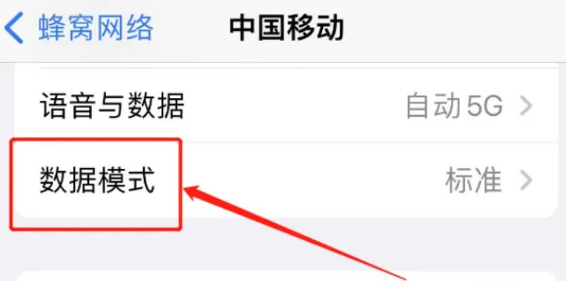 2.在蜂窝网络页面,点击数据模式,如下图。