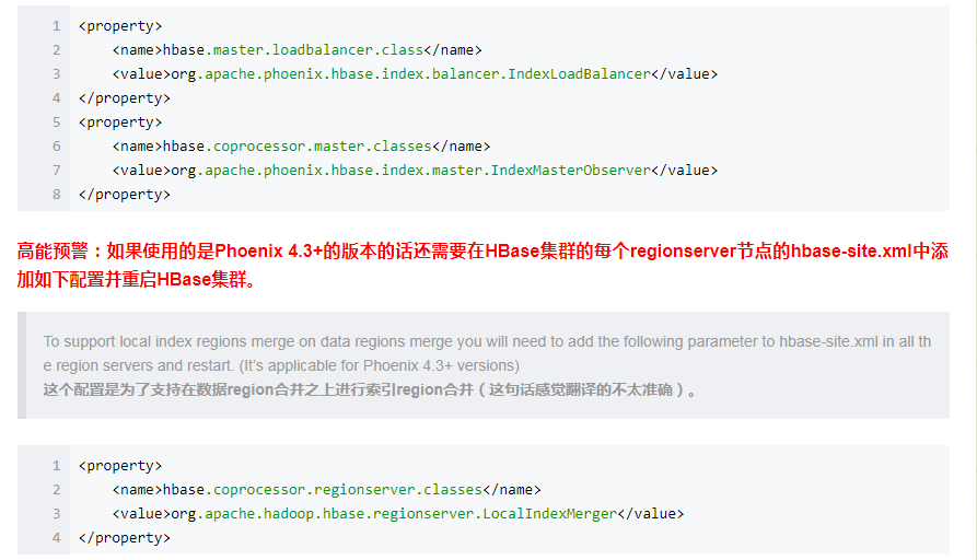 2.在region server的hbase-site.xml中添加上述配置,然后重启集群,再重新创建索引(这个全局索引也使用)