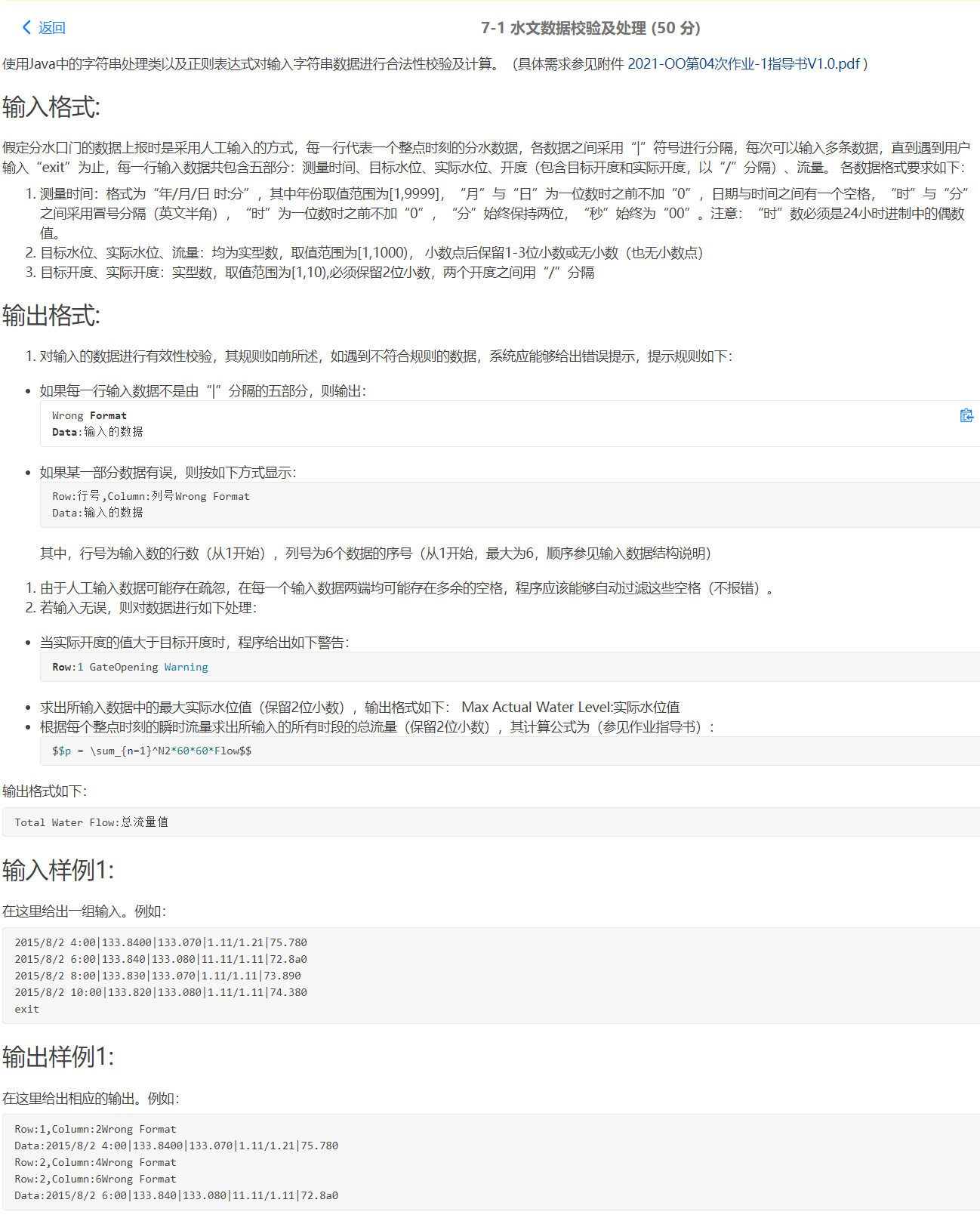 2)可以在类中设立全局变量,用来统计是否有不合法的数据,只要存在不合法数据,便修改标记,用来作为最后是否需要打印最大实际水位和总流量