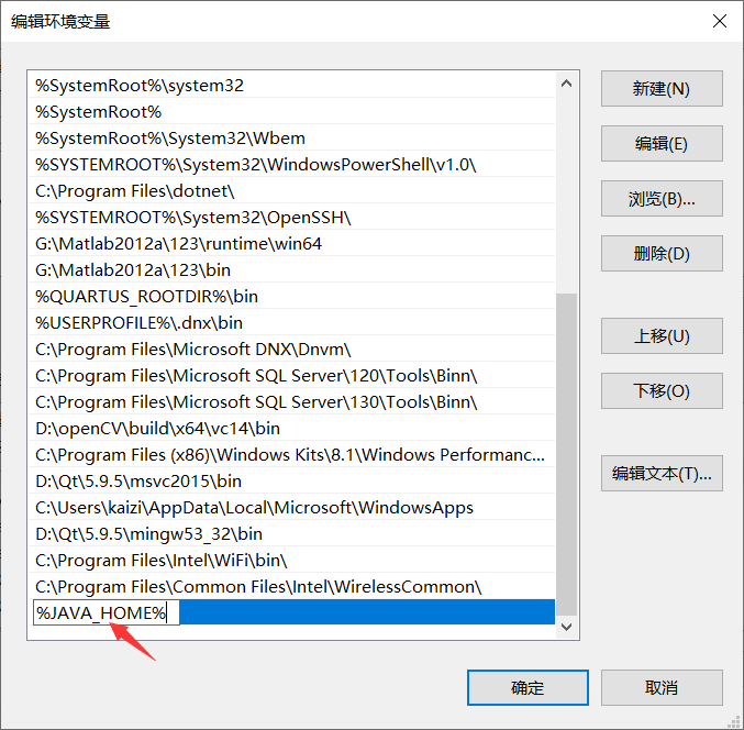 把之前在系统变量中新建的变量名写进去,注意前后加%号