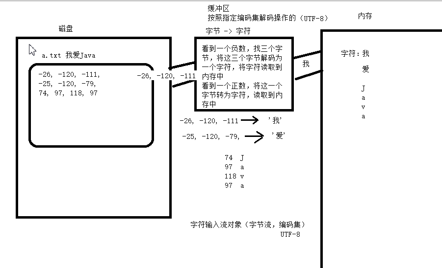 有缓冲区,用来解码编码字节,读取文件到内存: