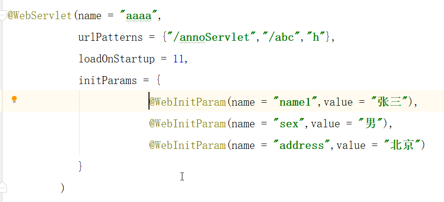 @WebServlet(name="",urlPatterns="/",loadOnStartup=1,initParams="")