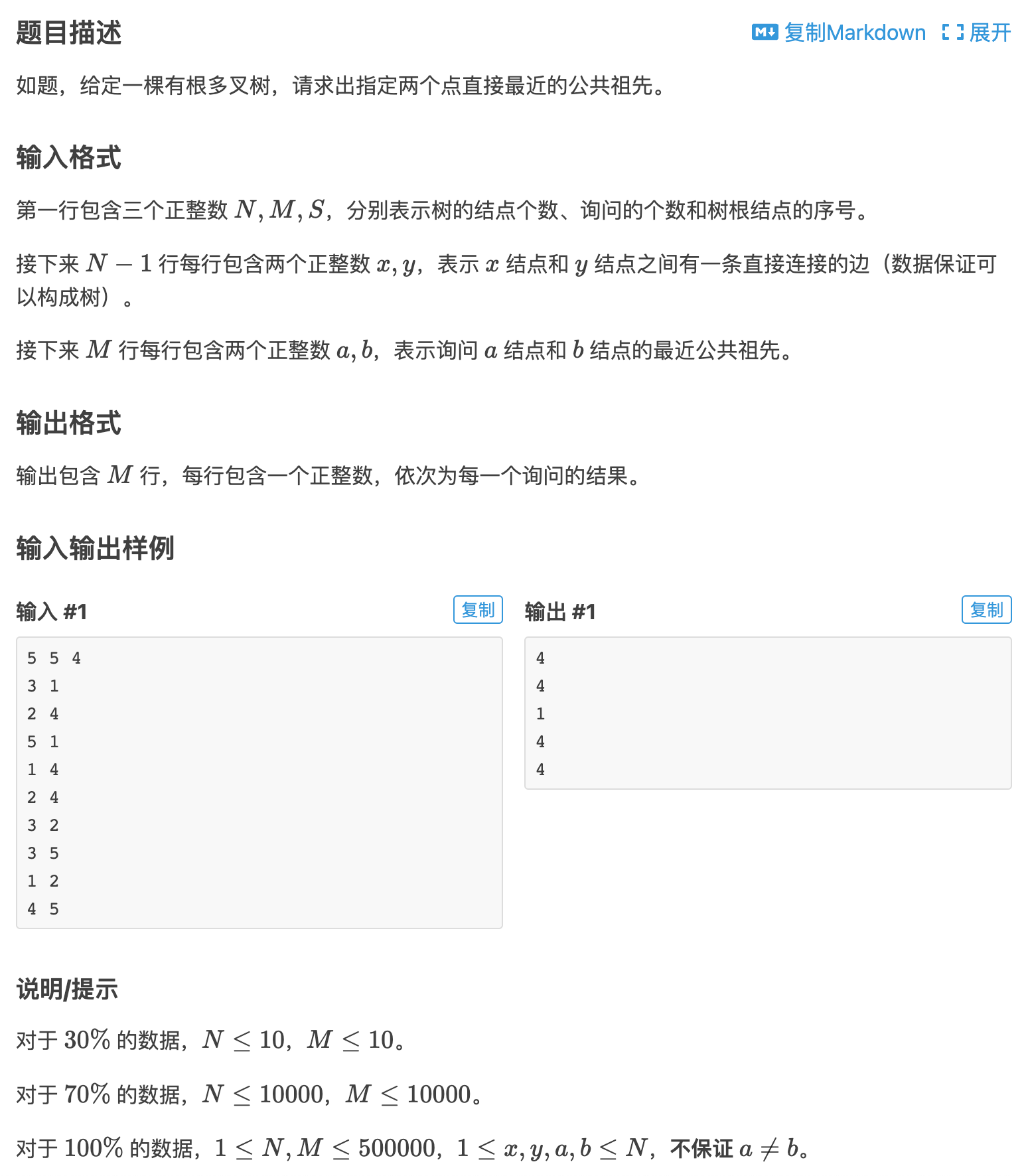 倍增法求LCA大体的思路是这样的:首先从树根dfs一遍求出所有节点到树根的距离(并且在点之间模拟出一条有向边),接着倍增法预处理出每个节点往上跳2的幂次方到达的点。面对询问时首先将两个两个点调整到同一深度,令dist[z] = dist[a] - dist[b] ( dist[a] > dist[b] ),接着循环一次求lowbit(z),代表这一位跳。调整到同一深度后检查一下是否两个点已经相同,相同的话直接输出。否则就是一步奇妙操作 : 循环21位如果两个点向上跳这一位相同的话就不跳,否则就同时向上跳这一位无限逼近LCA,最终任意一个点往上跳一步就是LCA。