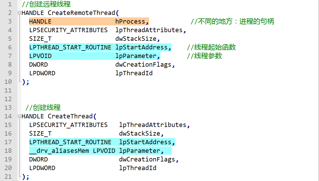CreateThread和CreateRemoteThread 唯一不同的地方
