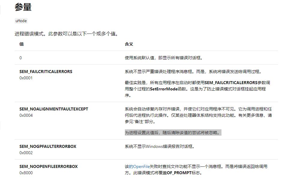 SetErrorMode是用于设置如何处理程序错误的,设置不同的值有不同的作用