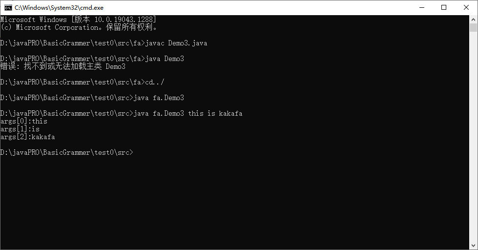 利用命令行运行一个class文件,要找对路径,从其所在的包的路径下执行