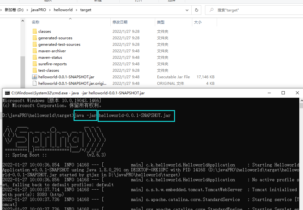 打包成功,这个jar包就是一个接口程序(是一个可执行程序)