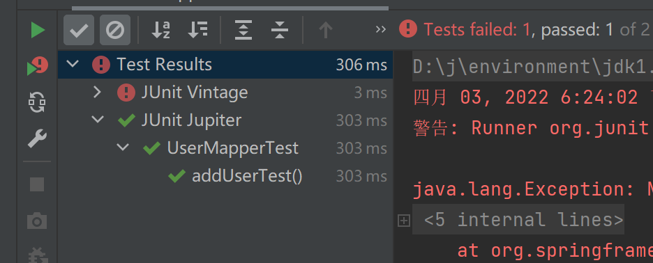 虽然测试能通过,但是有junit Vintage报错
