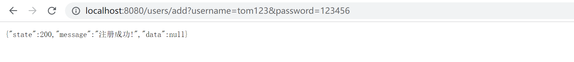 注意:此处用@RestController。如果用了@Controller+@ResponseBody,插入新用户成功,但是如果用户名相同则服务器没反应,也不会返回异常信息。