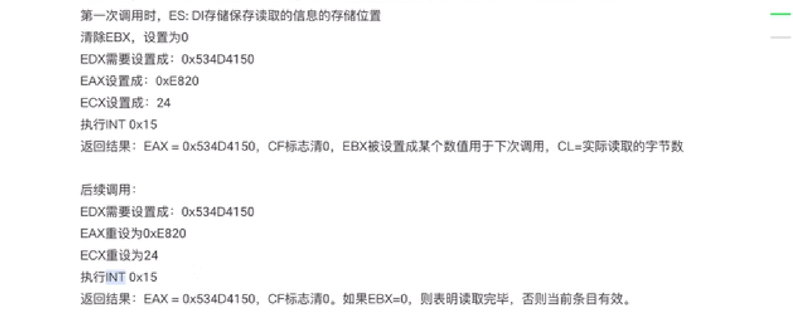 方法:利用BIOS中断来检测内存容量,具体是BIOS INT 0x15(或INT 15H)