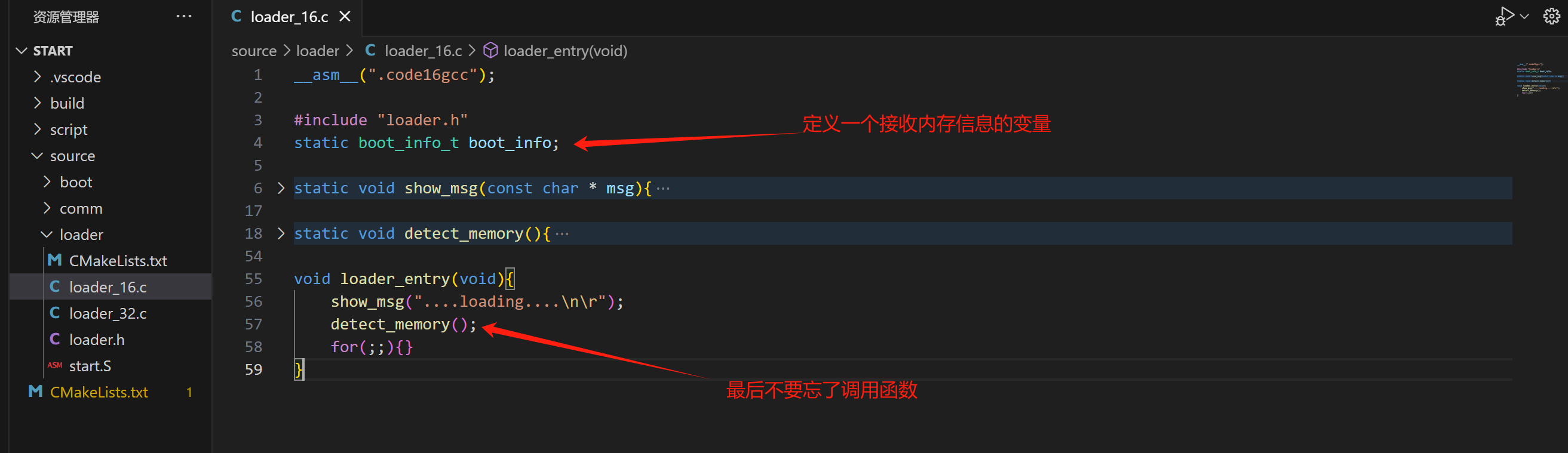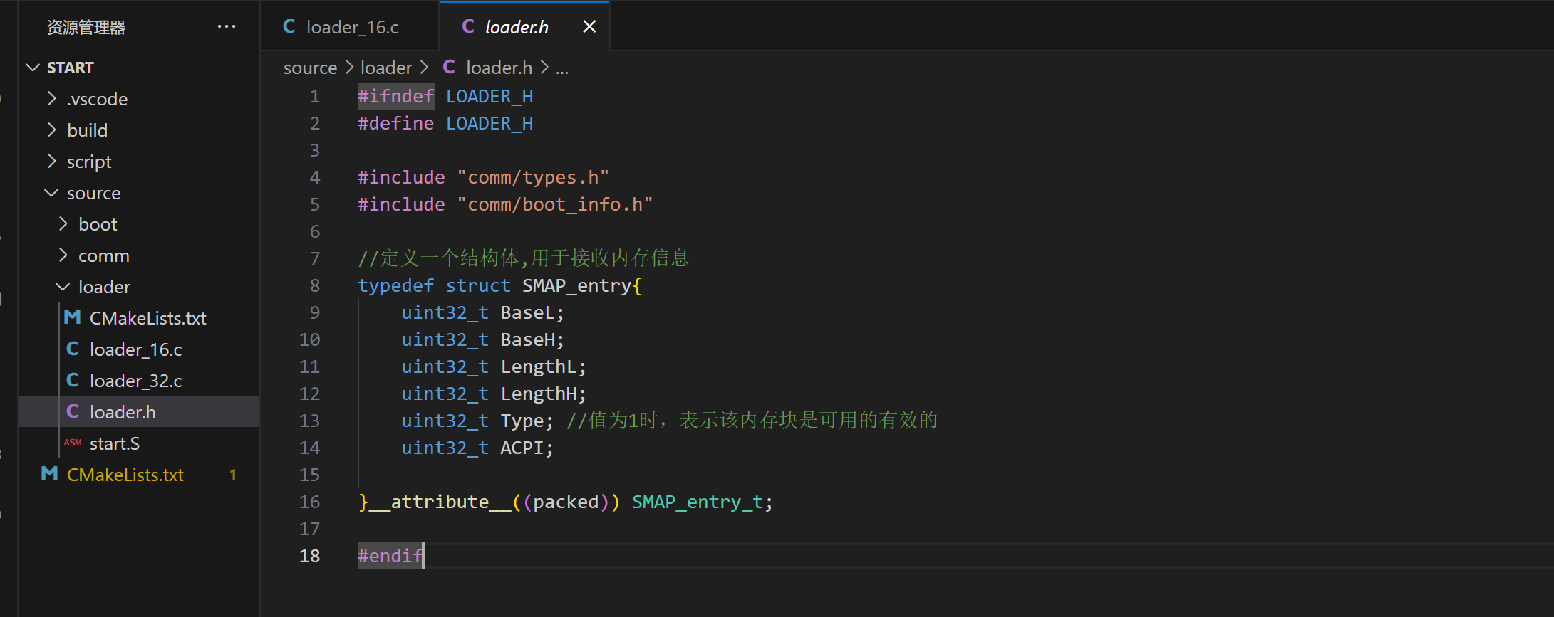 - 在loader.h里定义一个结构体,用于接收内存块的信息