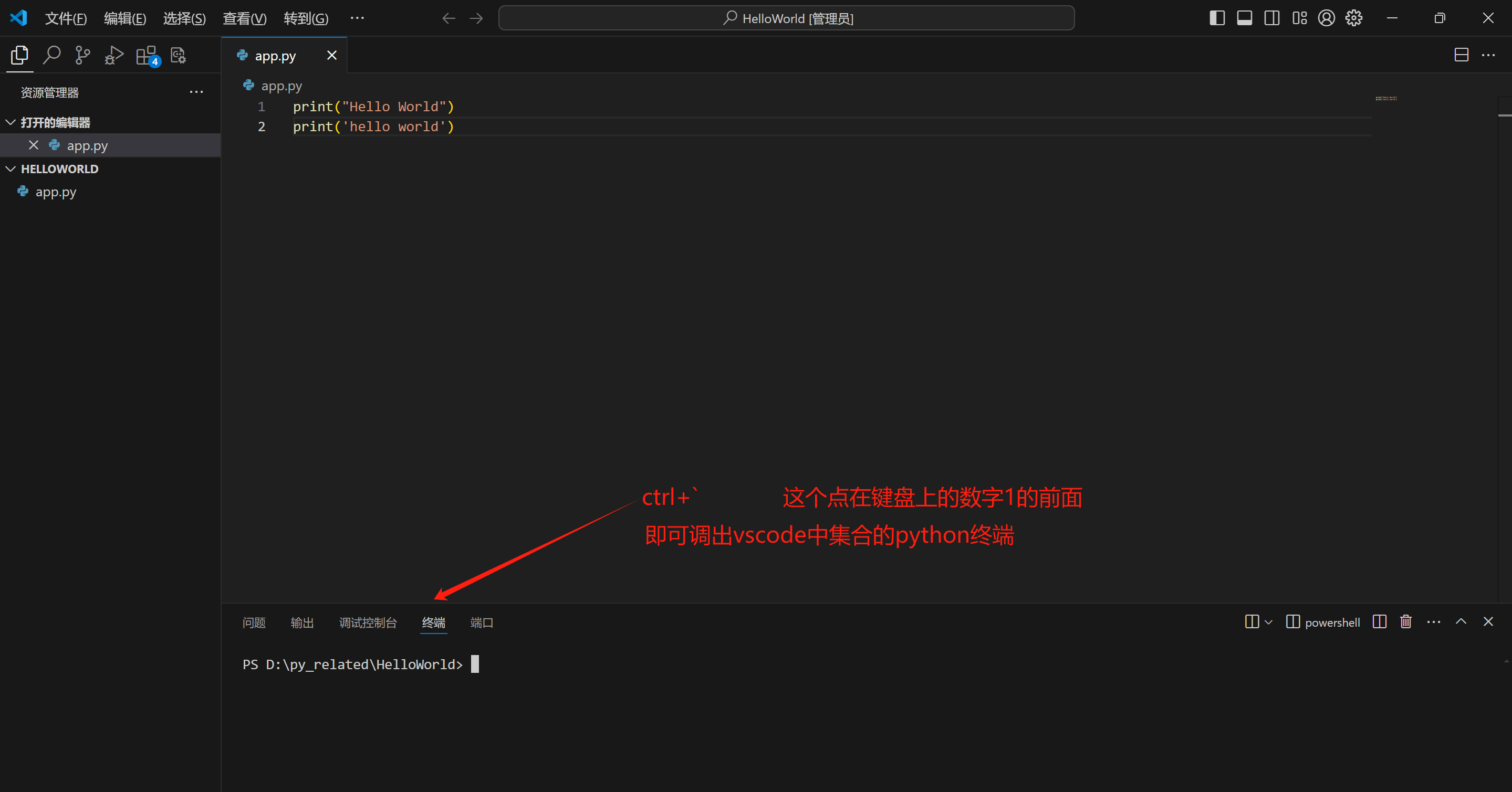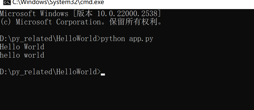 打开命令提示符界面,进入python解释器界面(即为一个执行python代码的程序):