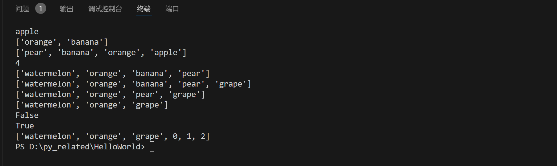 print(fruits[1:3]) # 切片操作 索引1-2 步长默认为1