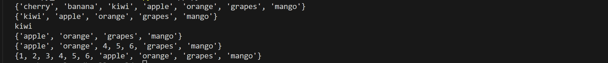 # 集合是无序且不重复的,所以会自动去掉重复的元素,并且每次运行显示的顺序不一样