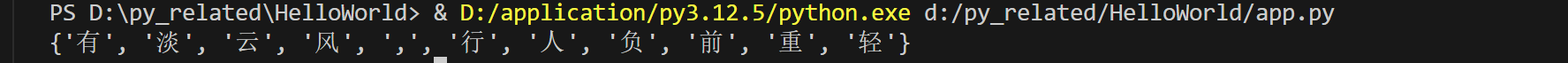 set_a = {value for value in '有人云淡风轻,有人负重前行'}