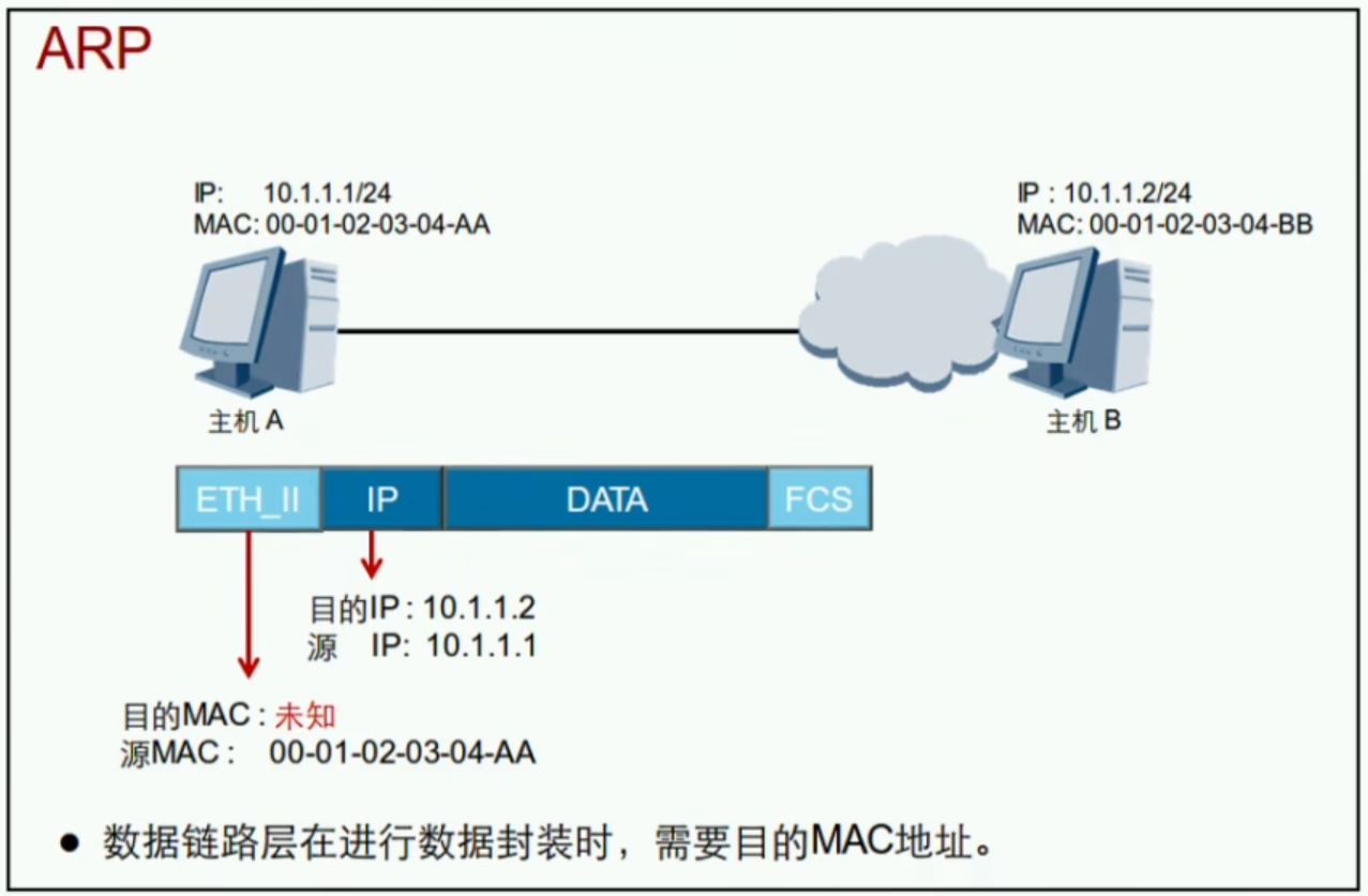 主机A在第一次与主机B进行通讯时,主机A只知道主机B的IP地址,但并不知道主机B的MAC地址