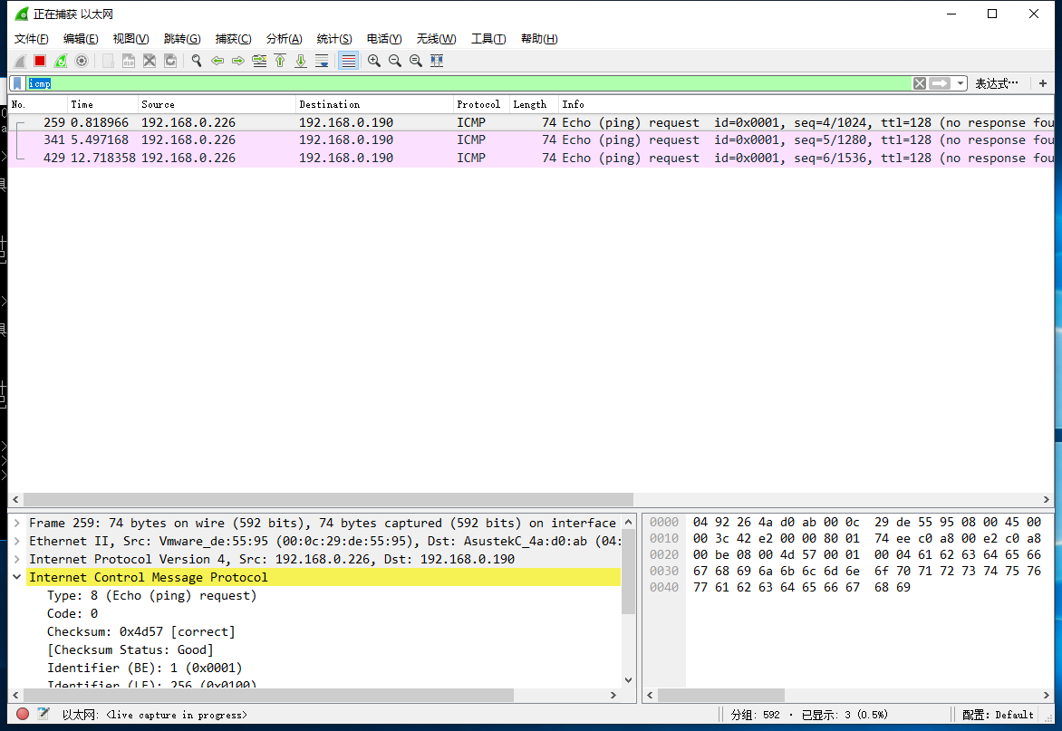 这是在抓包情况下,看到的ICMP包