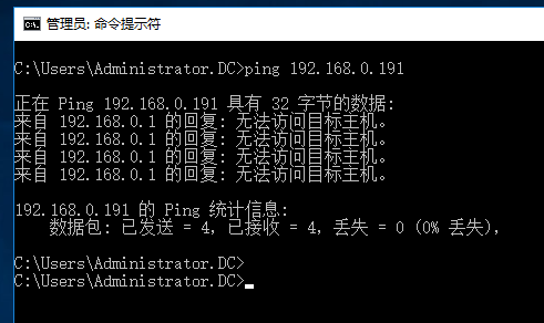如果你在ping对方主机时,发现了回显的内容为 "无法访问目标主机" 则代表没用任何一台机器在使用这个IP地址