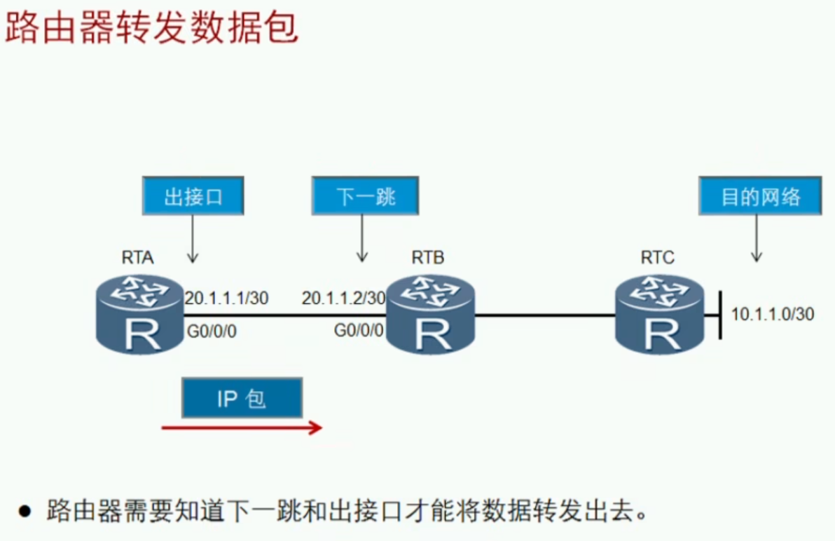 (注:下一跳地址指的是下一个路由器的接口地址,不是本路由器自己的接口地址;可以理解为下一跳就是路由器或其他三层设备的网关)