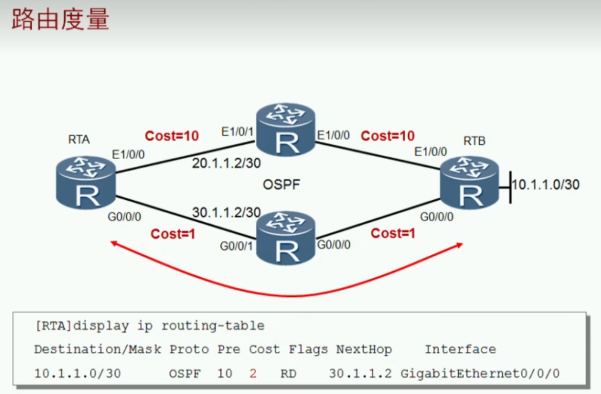 假设有两条路都通往同一个网络,并且使用的协议均是OSPF