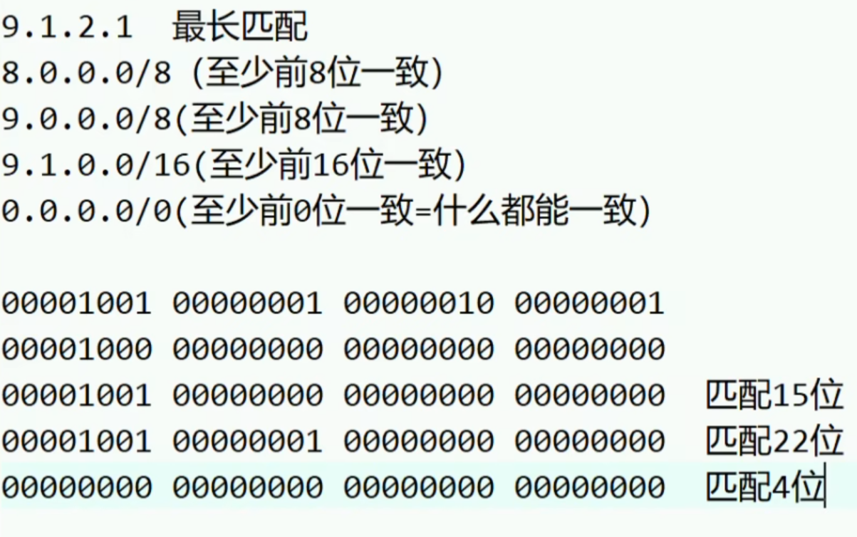 总结:当路由器(或其他三层设备)收到一个IP数据包时,会查看数据包的IP头部中的目的IP地址,并在路由表中进行查找,在匹配到最优的路由后,将数据包扔给改路由所指的出接口或者下一跳。