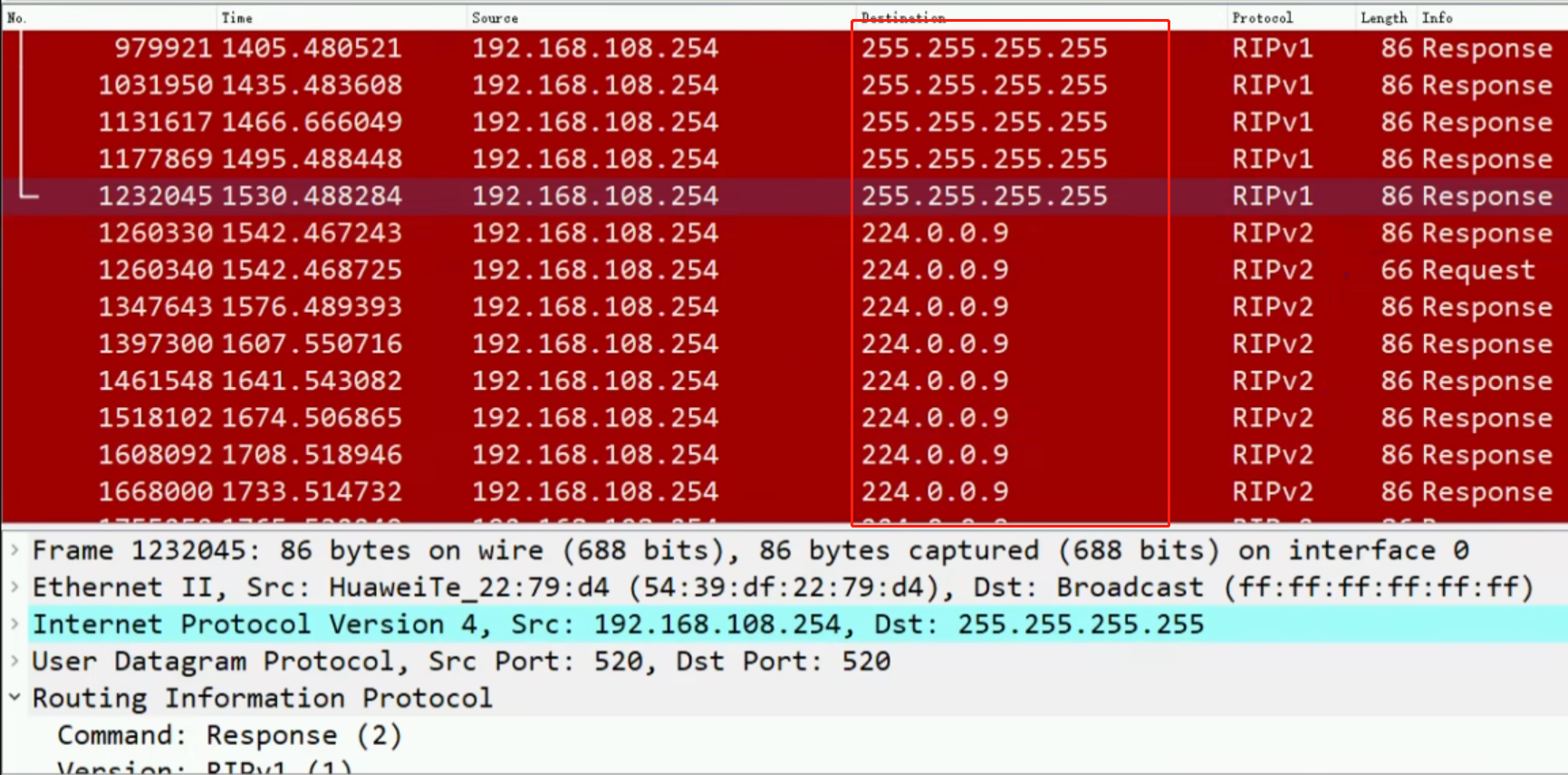 RIPv1与RIPv2抓包对比