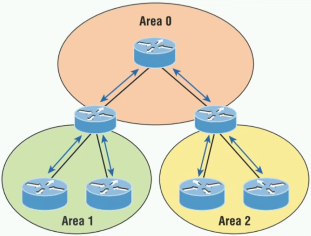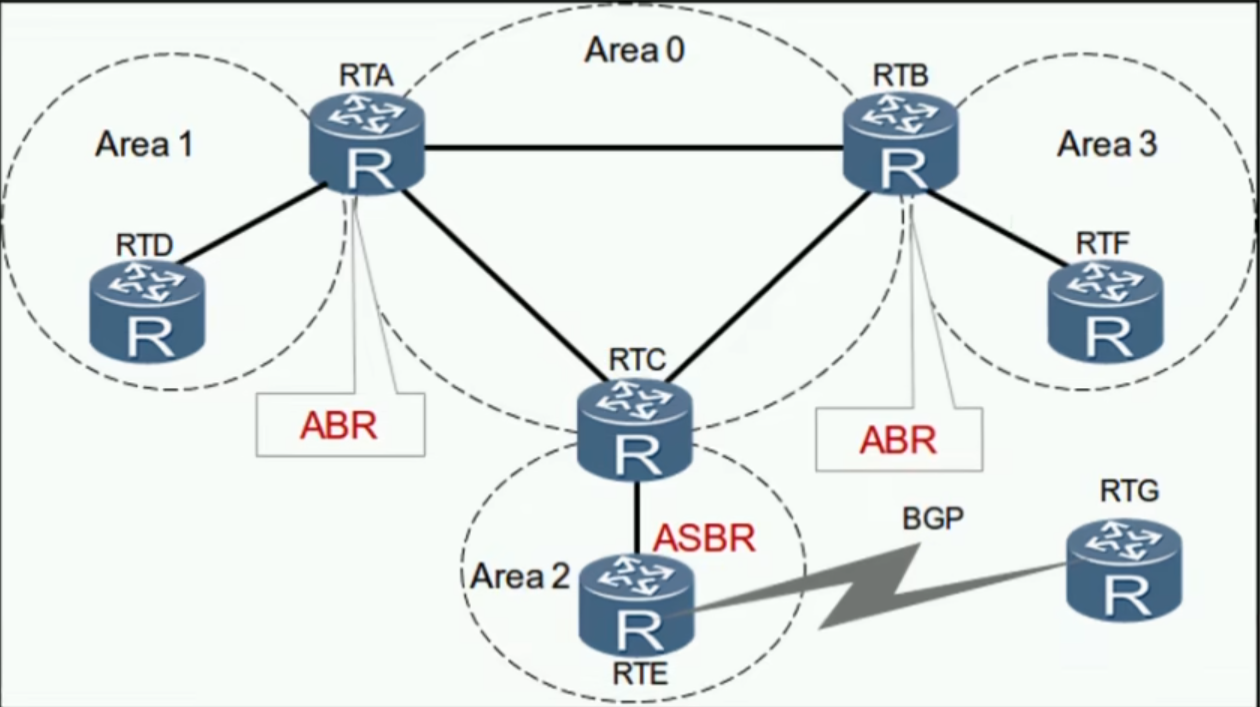 为了适应大型网络,OSPF在AS内划分多个区域;区域是以接口为单位来划分的(也因此:一个接口只能属于一个区域);每个OSPF路由器只维护所在区域的完整链路状态信息