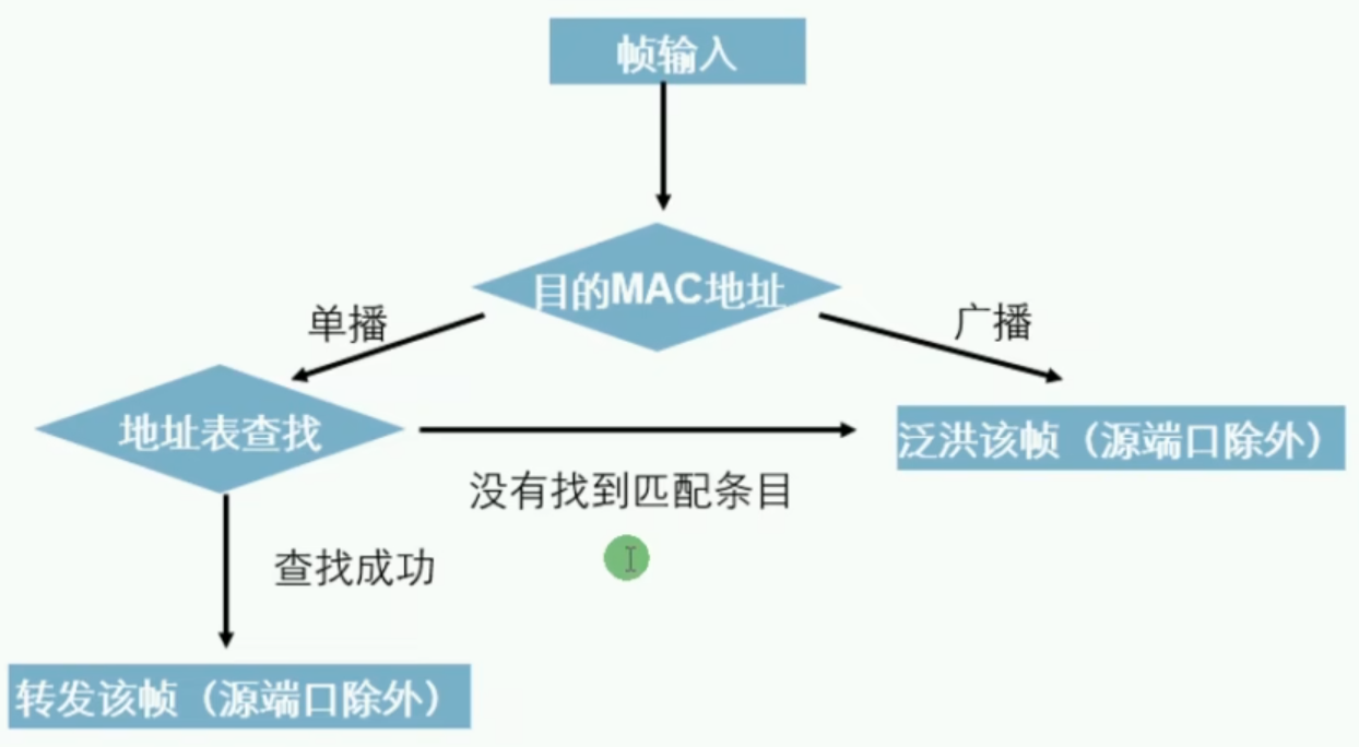 - 以太网数据帧的交换:根据目的MAC地址进行转发数据帧