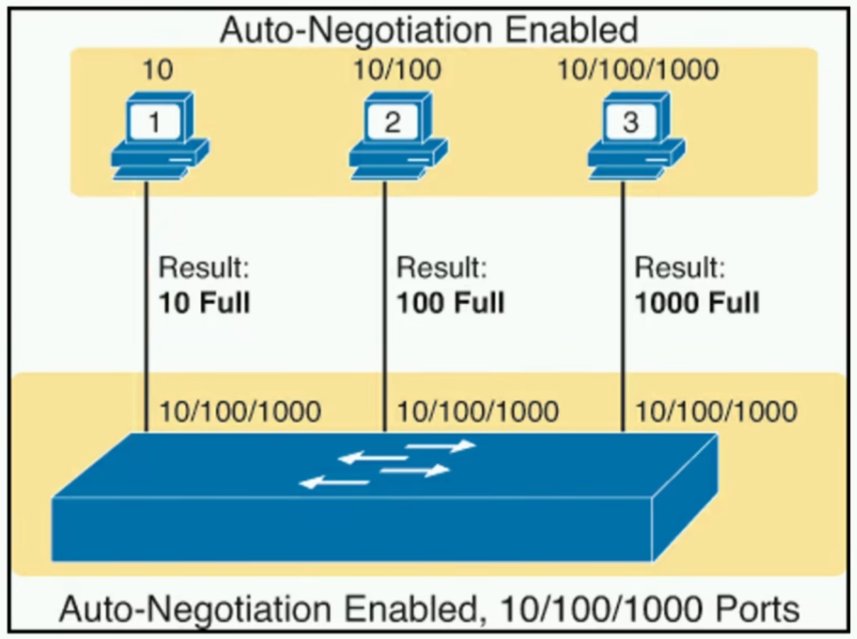 - 接口连接时两端进行协商,协商失败则无法正常通信