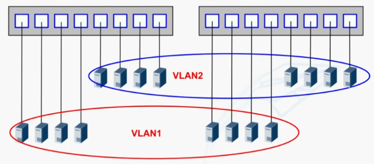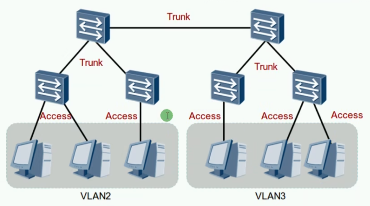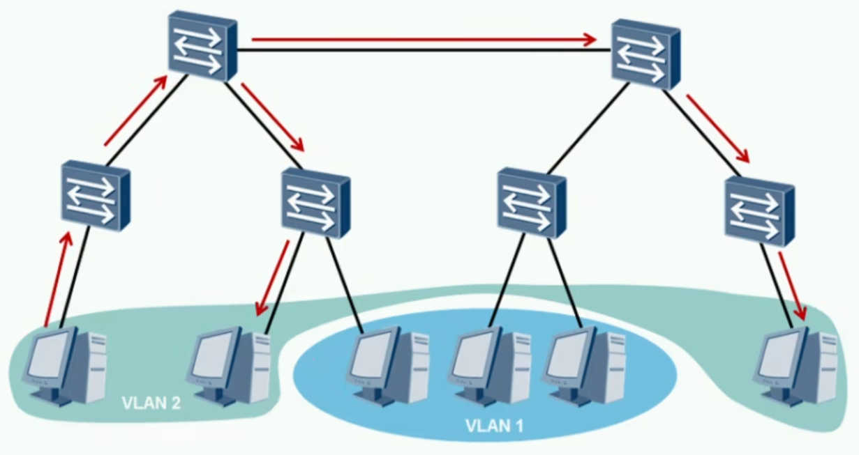 - 广播不会在Vlan之间转发,而是被限制在各自的Vlan中
