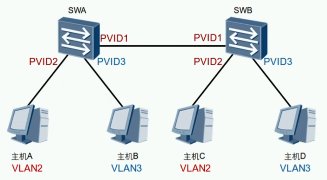 也可以交换机A配置:Vlan1、Vlan2;交换机B配置:Vlan1、Vlan2;因此交换机A的Vlan1可以与交换机B的Vlan1互通;交换机A的Vlan2与交换机B的Vlan2互通