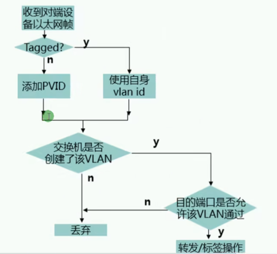 - 收到数据后会添加Vlan Tag,VlanID和端口的PVID相同