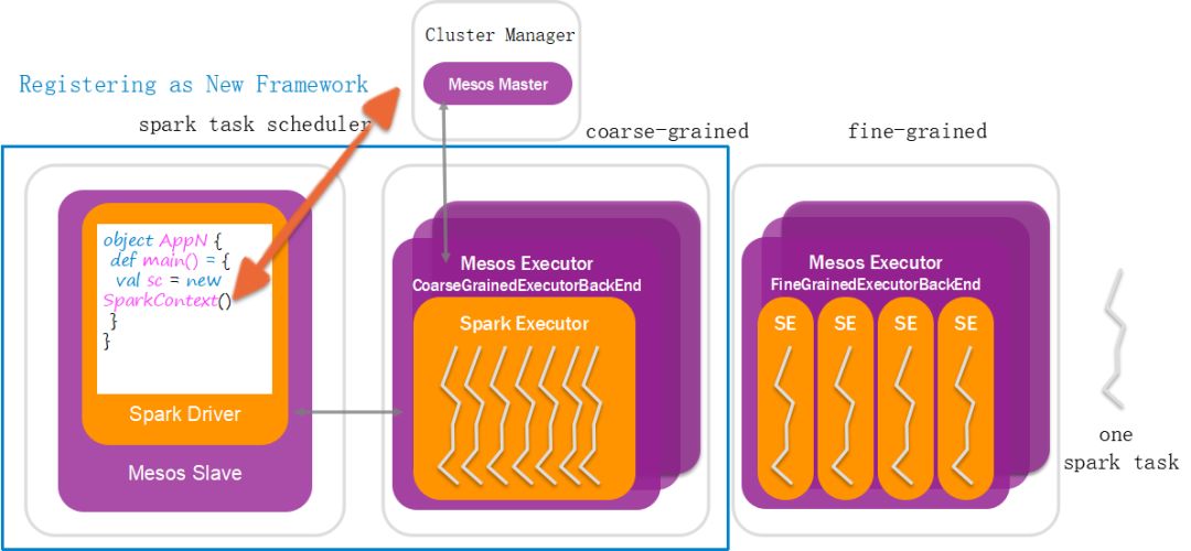 在spark和mesos的集成中,有一个Fine-Grained模式,同通常大数据的执行的时候,任务的执行进程早就申请好了资源,等在那里分配资源不同,这种模式是当任务分配到的时候才分配资源,好处就是对于资源的弹性申请和释放的能力,坏处是进程的创建和销毁还是粒度太大,所以这种模式下spark运行的性能会差一些。