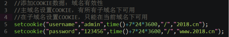 1.setcookie($name, $value, $expire, $path, $domain, $secure)